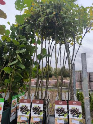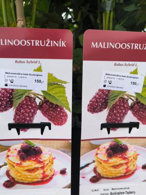 Maliny, rybízy, angrešty, zakrslé broskve a nektarinky a jiné jedlé křoví.