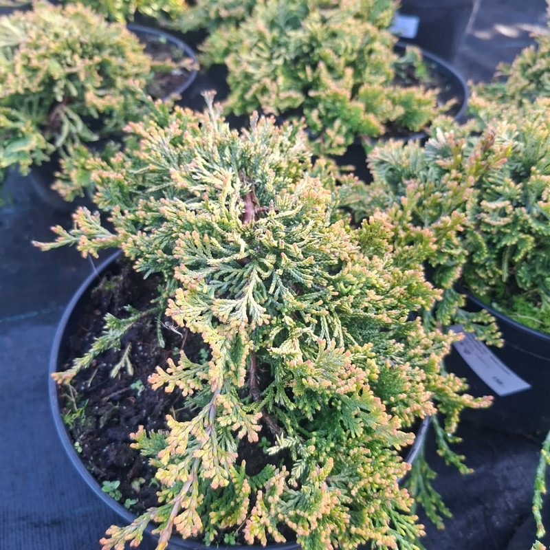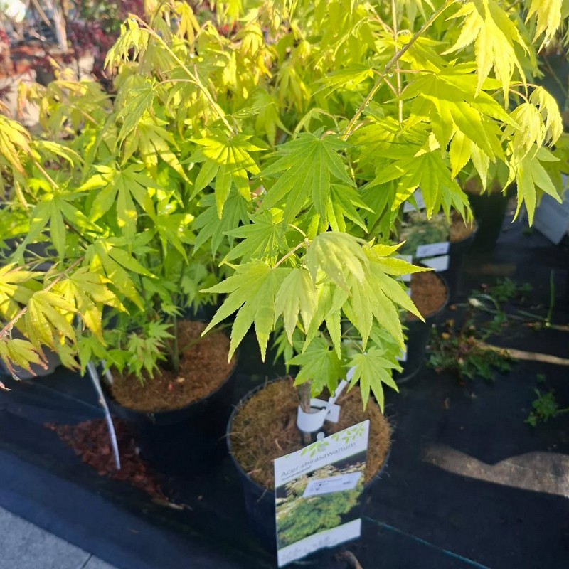 Dorazily nové borovičky, žluté japonské javory, kvetoucí azalaky a zakrslé rhododendrony a spoustu plazivých jalovců