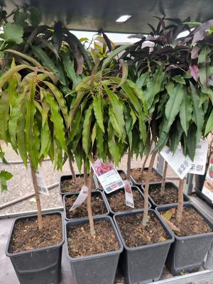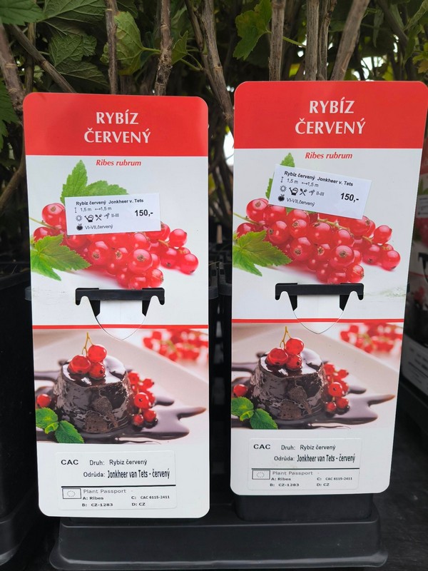 Maliny, rybízy, angrešty, zakrslé broskve a nektarinky a jiné jedlé křoví.